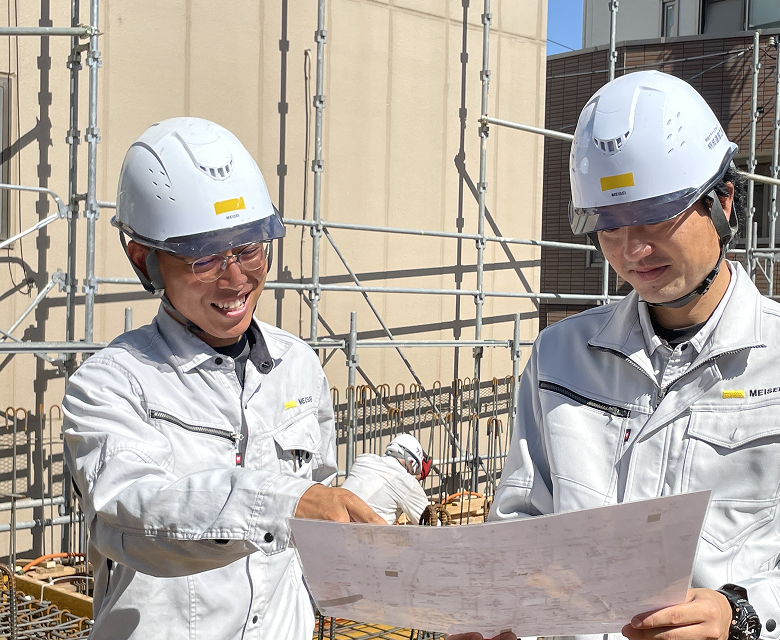 | 募集職種 | 新築RC造の建築施⼯管理 ①【現場所⻑(現場代理⼈)】 ②【現場監督(助監督)】 |