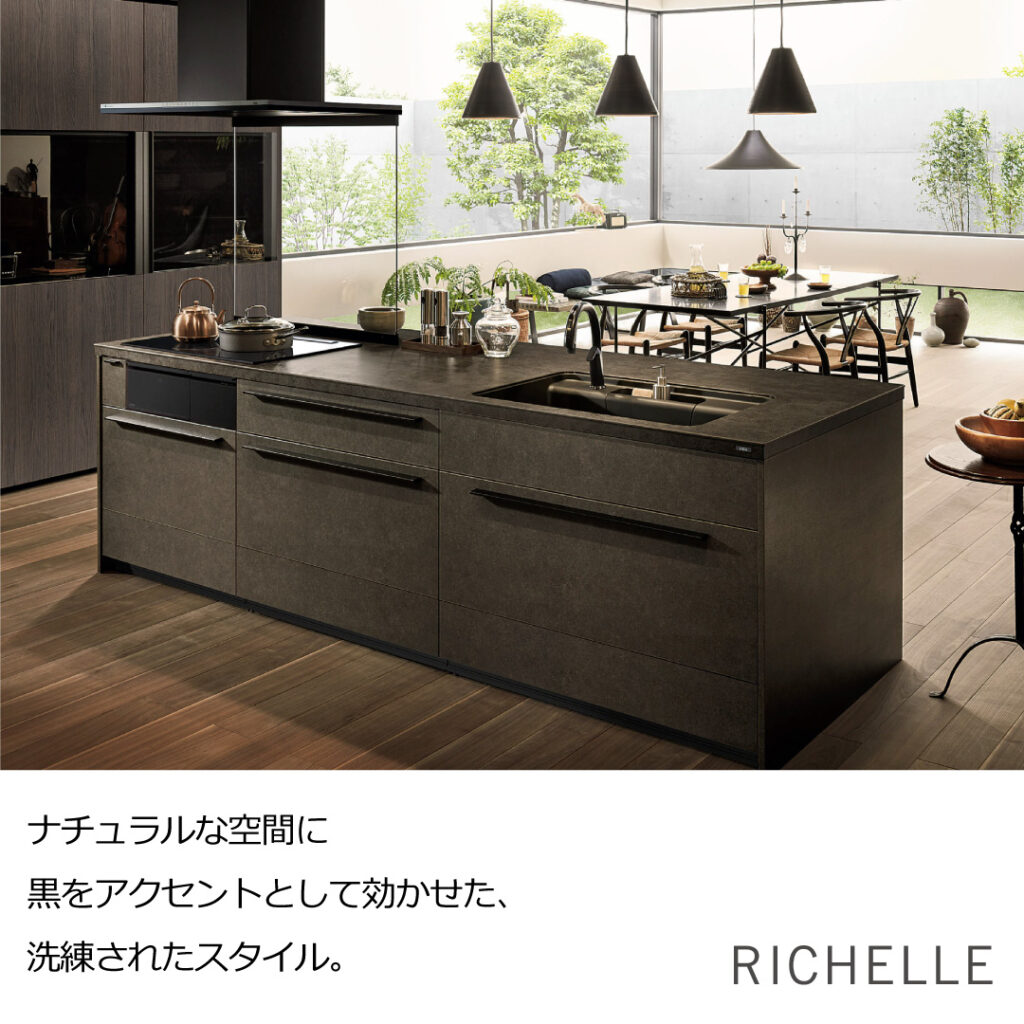 黒基調でまとめた高級感あふれるキッチン空間を実現します。