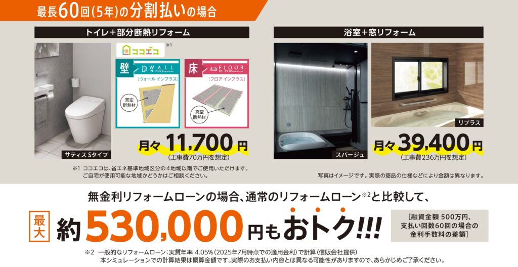 トイレ+部分断熱リフォーム(工事費70万円):約月々11,700円~